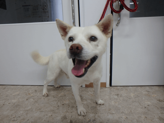少し怖がりです。人懐っこく尻尾を振って人に寄っていきます。